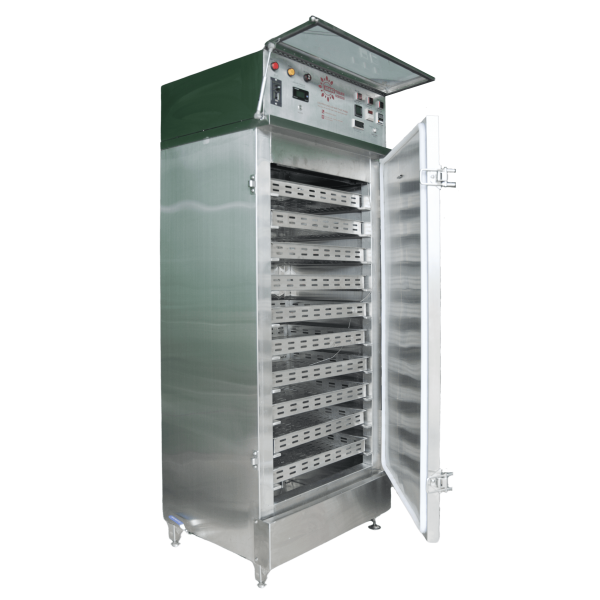 - Hệ thống điều hơi nóng đều từng khay: Công nghệ điều phối hơi đa điểm giúp hơi nóng lan tỏa đều, tránh tình trạng chín không đều giữa các khay – cho năng suất ổn định và chất lượng đồng nhất.